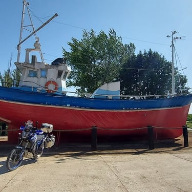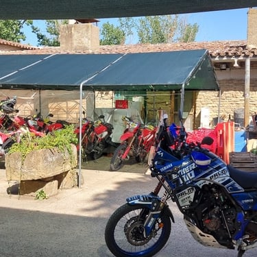 Aller c'est parti pour une journée de route (7h30 environ)en direction de Figarol sous 34 ° aux portes du désert pour rejoindre l'auberge chez Maria, un lieu incontournable avec son bateau où les passionnés de motos s'y retrouvent.