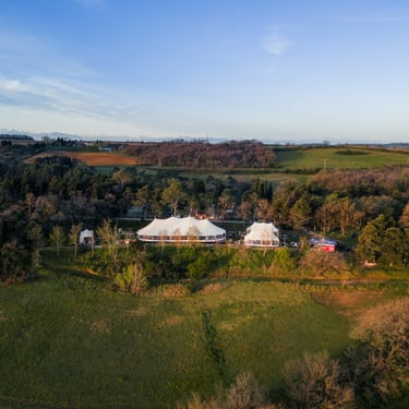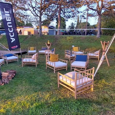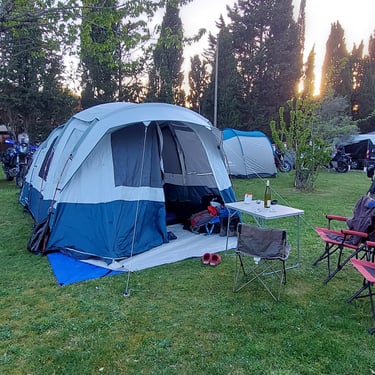 Arrivée au camping le soir même : déjà beaucoup de monde en place, et c'est parti pour l'installation de notre palace